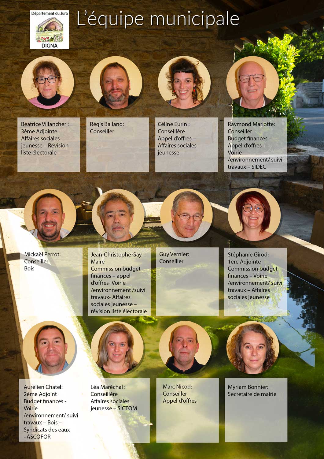 Le maire de Digna depuis Mai 2020 se nomme Monsieur GAY Jean-Christophe pour un mandant de 6 ans.